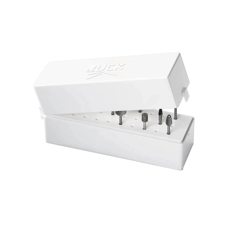 También se deben proteger los instrumentos rotatorios (cortadores, rectificadores). Importante para el almacenamiento después del reprocesamiento. Esta robusta caja de plástico con tapa con bisagras y base enchufable para hasta 30 cortadores y molinillos es ideal. De esta manera protegerá sus instrumentos durante el transporte para uso ambulatorio y demostrará su competencia en higiene.